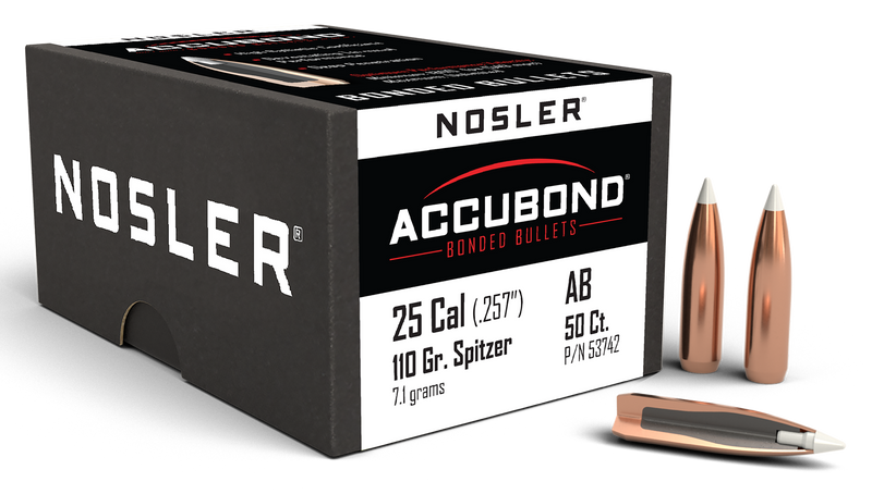 Nosler AccuBond .25 Caliber 110gr Spitzer Point Boat Tail Reloading Bullets - 53742