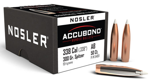 Nosler AccuBond bullets feature a proprietary bonding process that couples a copper-alloy jacket with a lead-alloy core for controlled expansion and penetration. Each box contains 50 bullets in .270 caliber (.277" diameter) with a 140 grain weight, designed for rifle reloading with a polymer tip for accuracy and a boat-tail base. These hunting-grade bullets deliver uniform expansion on impact and consistent performance across variable distances.