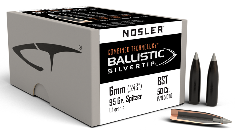 Nosler Ballistic Silvertip 6mm 95gr Spitzer Point Hunting Bullets 50/Box - 51040