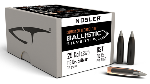 Nosler Ballistic Tip 25 Caliber 100gr Spitzer Hunting Bullets 50/Box - 25100
