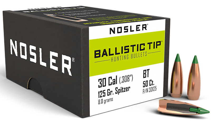 Nosler Ballistic Tip 30 Caliber 125gr Spitzer Hunting Bullets 50/Box - 30125