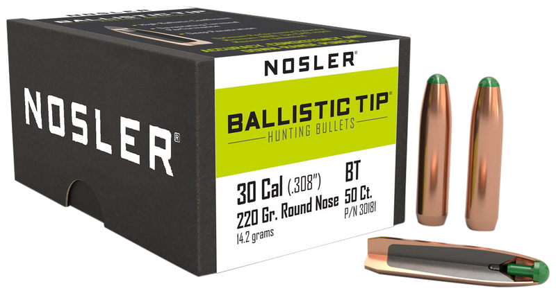 Nosler Ballistic Tip 30 Caliber 220gr Round Nose Hunting Bullets - 30181