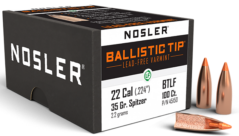 Nosler Ballistic Tip Lead Free .22 Cal 35gr Varmint Rifle Bullets - 45150