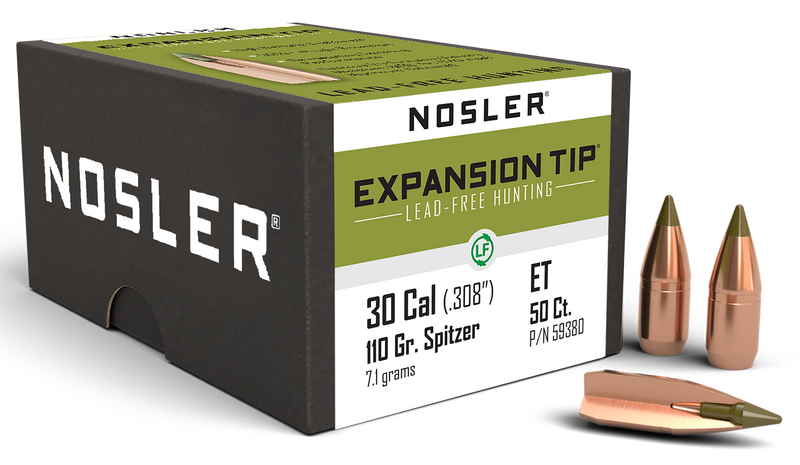 Nosler E-Tip bullets are lead-free, copper-core rifle bullets designed for hunting applications across a broad spectrum of impact velocities. The exclusive E² Cavity design provides immediate and uniform expansion while retaining 95% weight for improved penetration, and the boat-tail configuration with polymer tip enhances ballistic performance. Each box contains 50 bullets with a .308" diameter and 1.095" overall length.