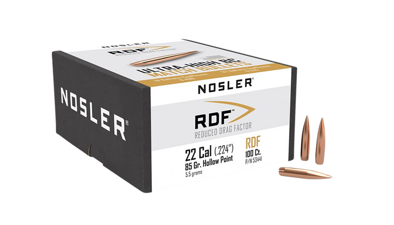 Nosler RDF Match .22 Cal 85gr Hollow Point Boat Tail Reloading Bullets - 53441