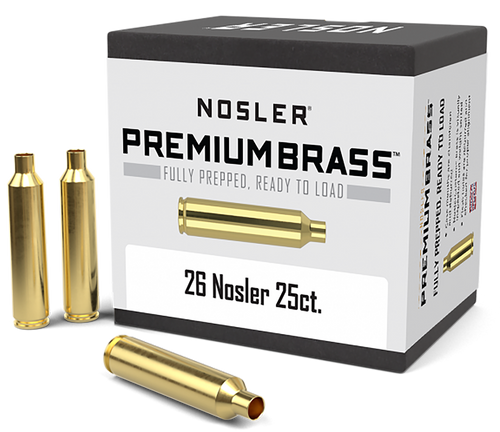 Nosler Premium Brass offers fully prepped .22 Nosler rifle cartridge cases ready for reloading with minimal additional case preparation. Each case is sized, trimmed to length, deburred, chamfered, weight sorted, polished, and hand-inspected to exacting dimensional standards. The 100-count box requires only primer, powder, and bullet to complete the reloading process.