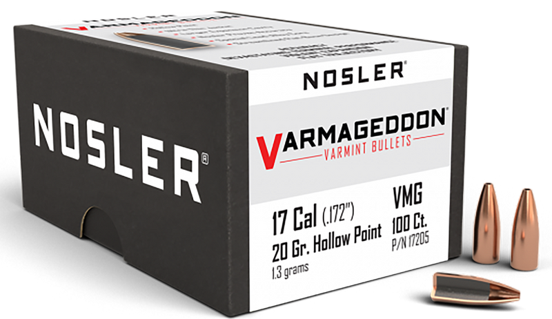 Nosler Varmageddon .17 Cal 20gr Flat Base Hollow Point Rifle Bullets - 17205