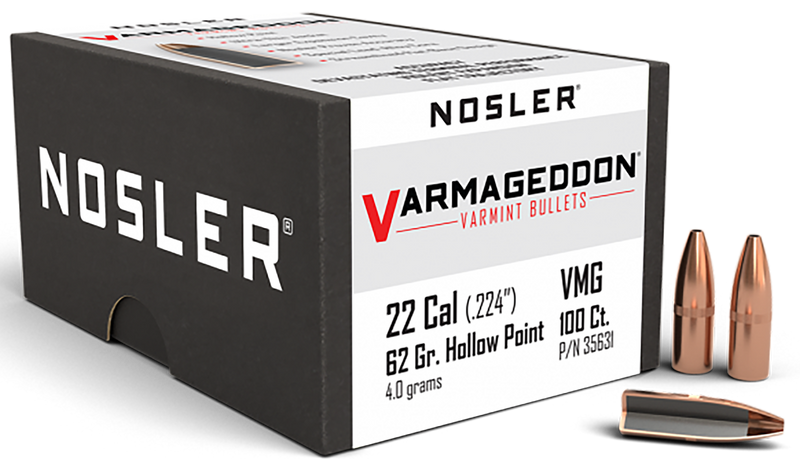 Nosler Varmageddon 22 Caliber 62 Grain Flat Base Hollow Point Reloading Bullets - 35631