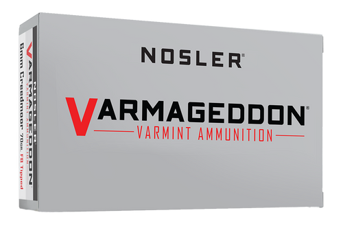 Nosler Varmageddon bullets are designed for varmint hunting with a flat base tipped design that delivers high velocities and exceptional terminal performance. The lead-alloy core combined with a copper-alloy jacket provides violent expansion on impact while the flat base design ensures bench-rest accuracy. Available in 100-count boxes, these .243" diameter bullets are designed for 6mm rifle cartridges.