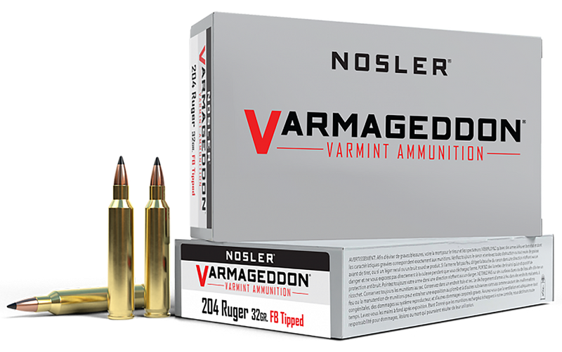 Nosler Varmageddon .204 Ruger 32gr Flat Base Tipped Rifle Ammo, 20 Rounds - 65115