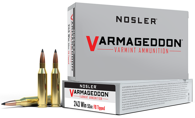 Nosler Varmageddon 243 Win 55gr Flat Base Tipped Rifle Ammo, 20rd Box - 65165