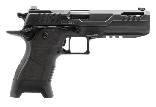 OA Defense 2311 Pro is a full-size, single-action semi-automatic 9mm pistol with a 5" ported barrel designed for duty and high-volume range use. Features include integral V-porting to reduce muzzle rise, a lightened slide profile with optic cut, ambidextrous safety, enhanced trigger, tritium night sights, and comes optics-ready with 4 mounting plates. Package includes 5 Magpul magazines and a custom pistol case.