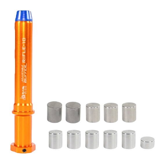 The Odin Works ABS is an adjustable buffer tube designed for AR-10 platforms, constructed from stainless steel with a weight range of 3.45 oz to 4.65 oz. This component allows shooters to fine-tune cycling and recoil characteristics by adjusting buffer weight. Installation is standard for AR-10 buffer tube systems.