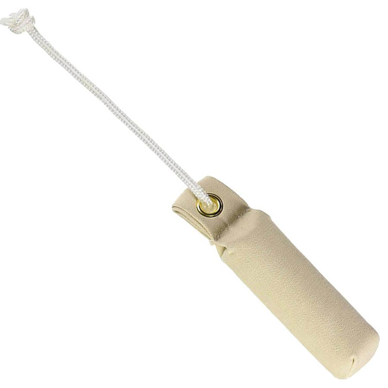 The Omnipet Canvas Dummy is a training tool sized at 2" x 9" designed for puppy fetch and retrieval exercises. Constructed from high-quality canvas material, it withstands regular training use including soft bites and water exposure. The white finish provides high visibility during outdoor training sessions.