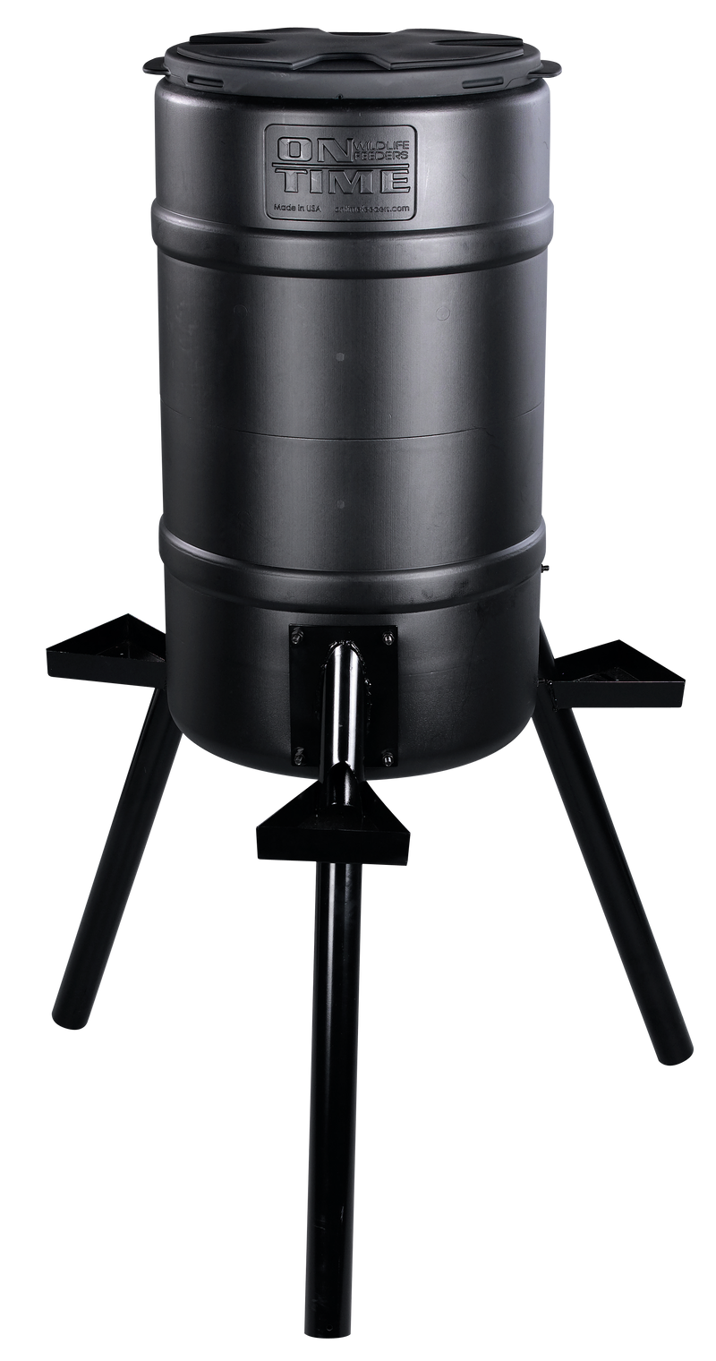 The Buckeye Gravity Feeder is a 200-pound capacity wildlife feeder constructed of polyethylene with metal legs and three feeding stations. This gravity-fed design accepts all types of feed and features a removable lid for easy filling and maintenance, making it ideal for hunters and wildlife enthusiasts seeking a reliable feeding solution.