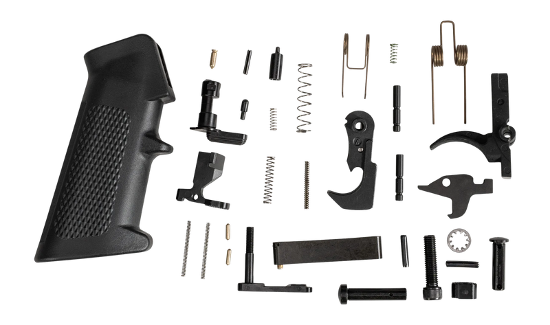 Complete lower parts kit for AR15 platform rifles. Includes all necessary components for lower receiver assembly. Compatible with standard AR15 lower receivers.