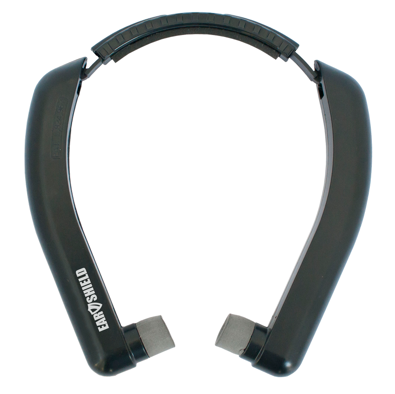 The Otis Ear Shield is a behind-the-neck earplugs style hearing protection device with a 31dB noise reduction rating designed for shooters. It features Sound Reduction Chamber Technology that blocks high-decibel noise while allowing speech and range commands to be heard clearly. The compact design won't interfere with proper cheek weld or firearm handling.