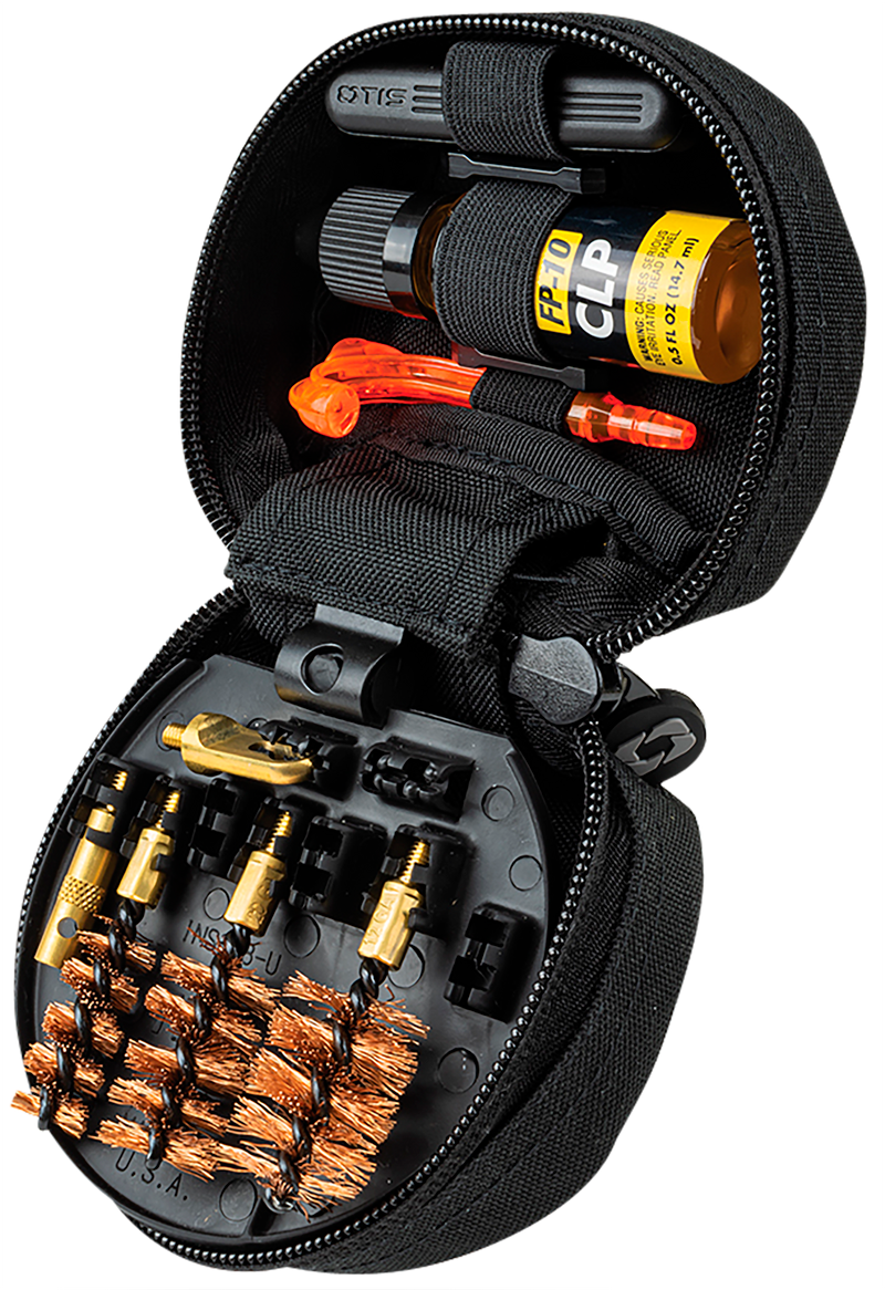 This Otis shotgun cleaning kit is designed for multi-gauge shotgun maintenance and comes in a convenient softpack format for easy storage and transport. The kit includes essential cleaning components and is suitable for general firearm care and maintenance.