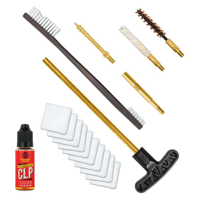 This Otis .22 caliber pistol cleaning kit includes brass rod sections, brush, mop, jag, and patches designed to clean .22 caliber handguns without causing damage. The kit also includes an all-purpose brush and FP-10 Lubricant Elite CLP for firearm maintenance and lubrication. Components are packaged in a hard case for convenient storage and transport.