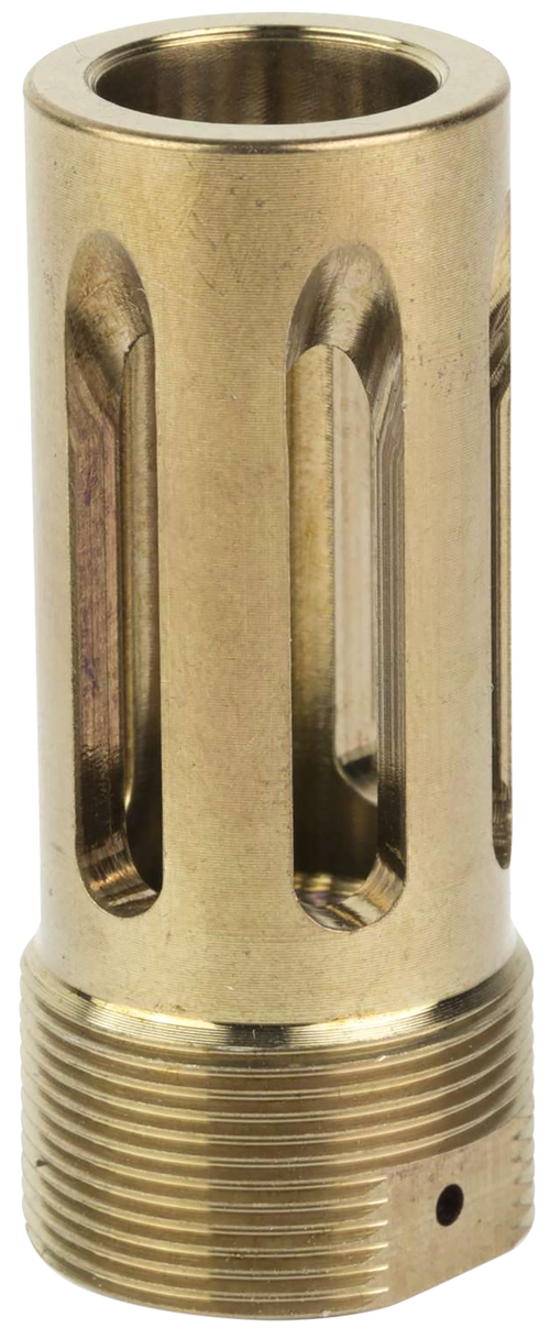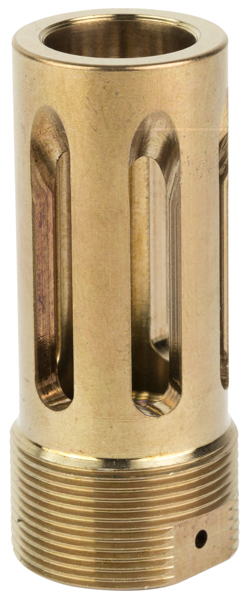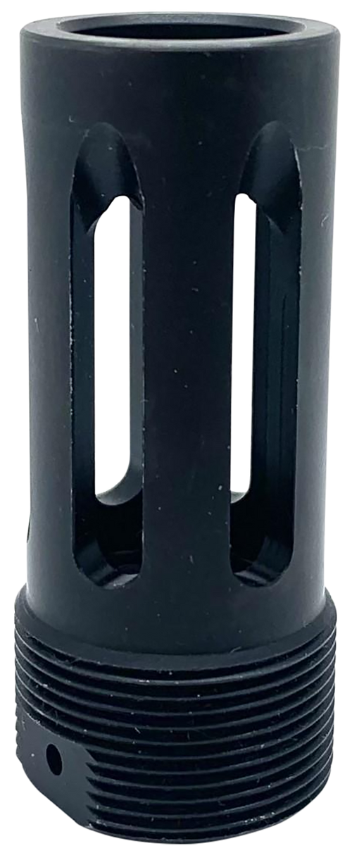 This is a flash hider muzzle device designed for use with Ops Inc 12 Model, AEM5, and OCM5 suppressors. Constructed from H900 heat-treated 17-4 steel with a black nitride finish, it features wrench flats and a pre-drilled hole for pin/weld installation.