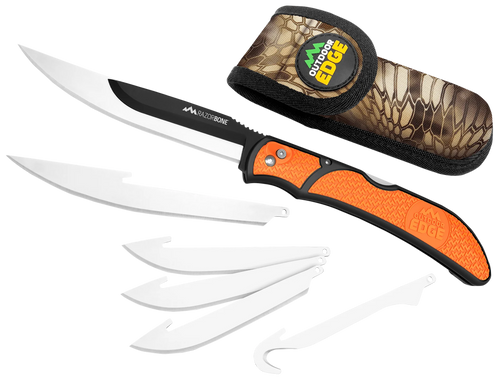 The Outdoor Edge Field Bone is a folding blade knife designed for outdoor field use and comes with a protective sheath for storage and transport. This compact folding knife is built for general cutting tasks in hunting and outdoor activities.