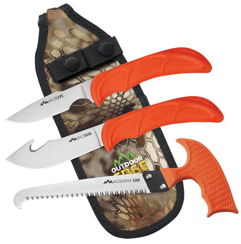 Outdoor Edge WildGuide 3-Piece Fixed Blade Hunting Combo with Sheath, Blaze Orange - WG10C