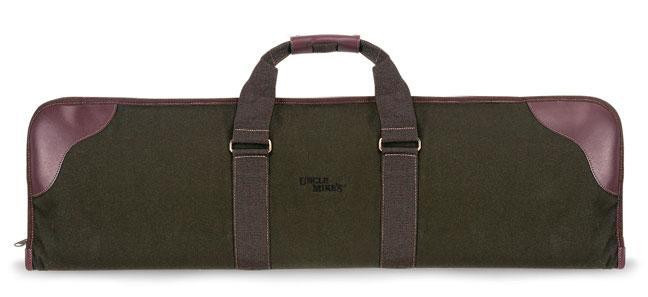 Canvas shotgun case designed for over/under shotguns with weather-resistant construction and snag-free poly-padded lining. Features durable canvas material with leather accents, snag-free zipper, and carrying handle for convenient transport and protection.