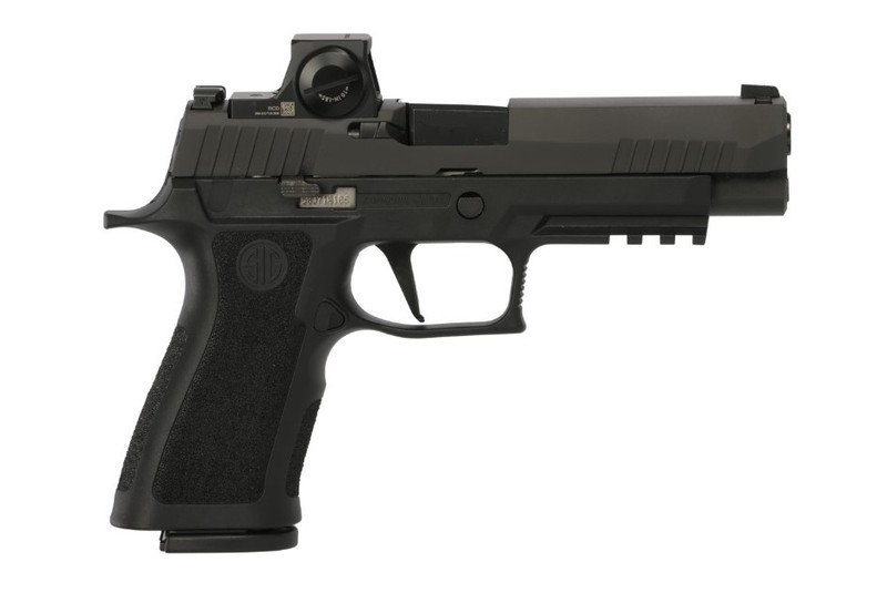 SIG SAUER P320 Full-size striker-fired semi-auto pistol chambered in 40 S&W with a 4.7" barrel and 14+1 round capacity. Features a polymer frame, Nitron finish, X-Ray 3 night sights, and Romeo-X red dot optic ready. Weighs 28.3 oz with an overall length of 8".