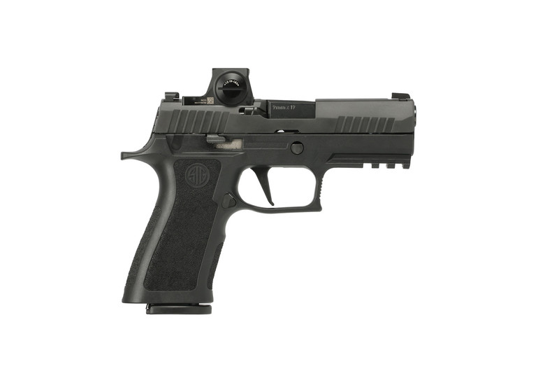 SIG SAUER P320 Pro chambered in 9mm with a 3.9" barrel and striker-fired action. Features a polymer frame, Nitron finish, X-Ray 3 night sights, and Romeo-X enclosed optic mount. Includes three 17-round steel magazines and weighs 26 oz.