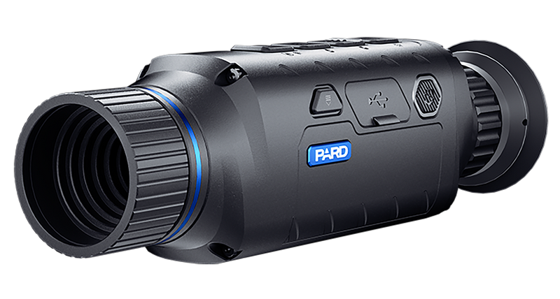 The Pard Leopard 256 is a compact thermal monocular with 2x magnification and 16mm objective lens, featuring a 256x192 uncooled VOx thermal sensor with 12 micron pixel interval and 50 Hz refresh rate. It offers digital zoom (2x, 4x, 6x, 8x), 6 color palettes, and on-board video/audio recording with 128GB storage. The lightweight design (10.58 oz), IP67 waterproofing, and 6-hour battery runtime make it ideal for hunting, surveillance, and outdoor observation.