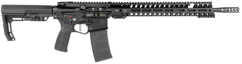 Direct impingement semi-auto rifle chambered in 5.56 NATO/.223 Remington with a 16.5" nitrided Puritan barrel featuring 1:8 twist rate and triple port muzzle brake. Features a Gen4 billet lower receiver, optic-ready design, M-LOK Renegade rail, Mission First Tactical minimalist stock, and POF drop-in flat trigger; weighs 6.3 lbs and includes one 30-round magazine.