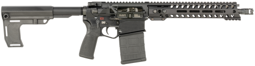 Semi-auto pistol chambered in .308 Win with a 12.5" barrel and 20+1 capacity. Features a Burnt Bronze Cerakote finish, SBA3 pistol brace, 11.5" Renegade forend, triple port muzzle brake, and adjustable gas block. Weighs 6.3-6.5 lbs with an overall length of 29.5-30".