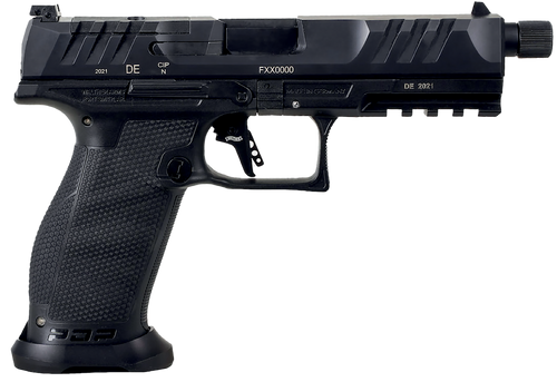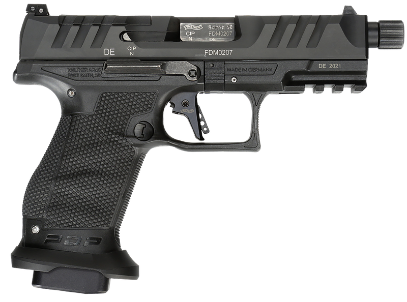 The Walther PDP Compact Pro SD is a 9mm Luger striker-fired semi-automatic pistol with a 4.6" threaded barrel and optics-ready slide. It features white dot adjustable sights, performance duty textured grip, and a 10+1 round capacity. This compact polymer frame handgun includes dynamic performance trigger technology and serrated slide serrations for enhanced handling.