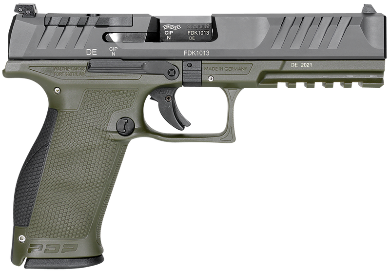 Walther PDP Full Size Optic Ready 9mm Luger 5" 18+1rd Pistol, OD Green/Black - 2858398
