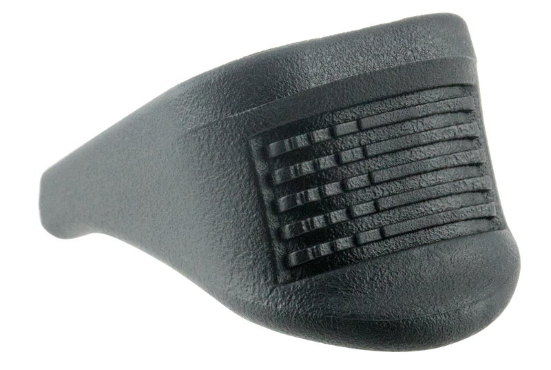 This polymer grip extension fits Glock 26, 27, 33, and 39 pistols, adding 1 inch to the grip length for improved control and comfort without increasing magazine capacity. Made from high-impact polymer with a textured black finish, it replaces the factory magazine base plate while maintaining factory appearance and blending with the handgun's contours.