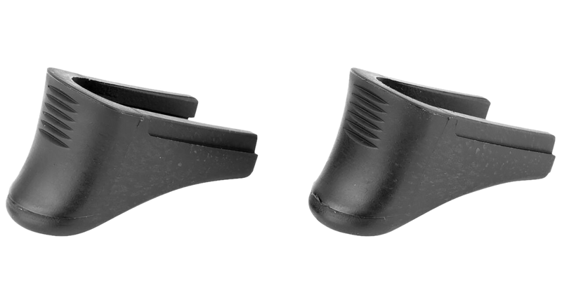 Pearce Grip extension for Ruger LCP and LCP II chambered in .380 ACP, made of polymer with a black finish. This grip extension replaces the magazine base plate and adds approximately 1/2" of gripping surface for improved comfort and control without altering magazine capacity. Two extensions per pack.