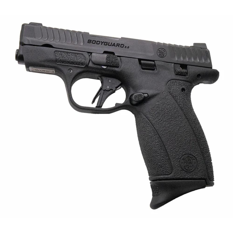 This grip extension for S&W Bodyguard 2.0 .380 ACP 10-round magazines adds approximately 3/4 inch of gripping surface for improved comfort and control. The extension replaces only the magazine base plate while retaining all other factory components and does not alter magazine capacity. Compatible exclusively with S&W Bodyguard 2.0 10-round magazines; not compatible with 12-round magazines.