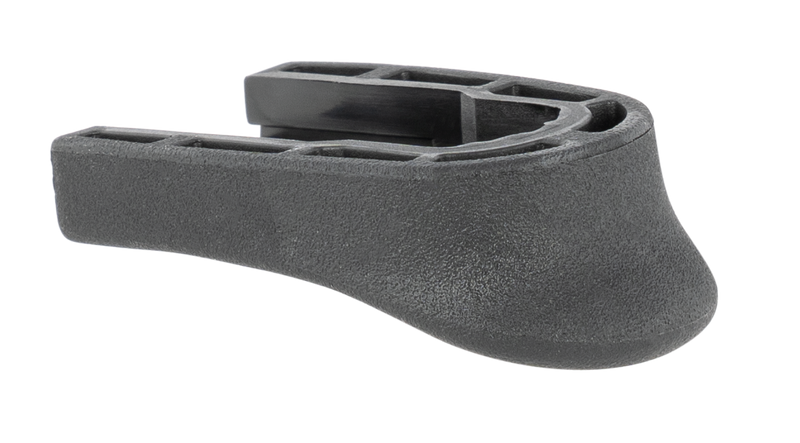 This grip extension replaces the magazine base plate on the S&W M&P Shield EZ 9mm and adds approximately 1/2" of additional gripping surface with enhanced ergonomics. Made from high-impact polymer with a matte black finish, it does not alter magazine capacity and blends seamlessly with the handgun's contours. The extension is rated to withstand drop tests at temperatures from -20°F to 250°F.