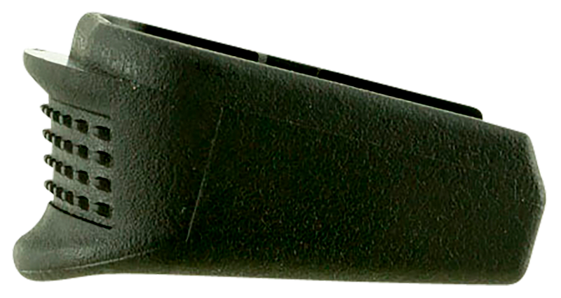 This magazine extension grip is designed for Glock 26, 27, and 33 Gen 4 and 5 models and adds approximately 5/8" of length for improved grip control and comfort. The extension adds 2 rounds to the G26 and 1 round to the G27 and G33, and requires magazines with notches for ambidextrous magazine release. Made of black textured polymer material.