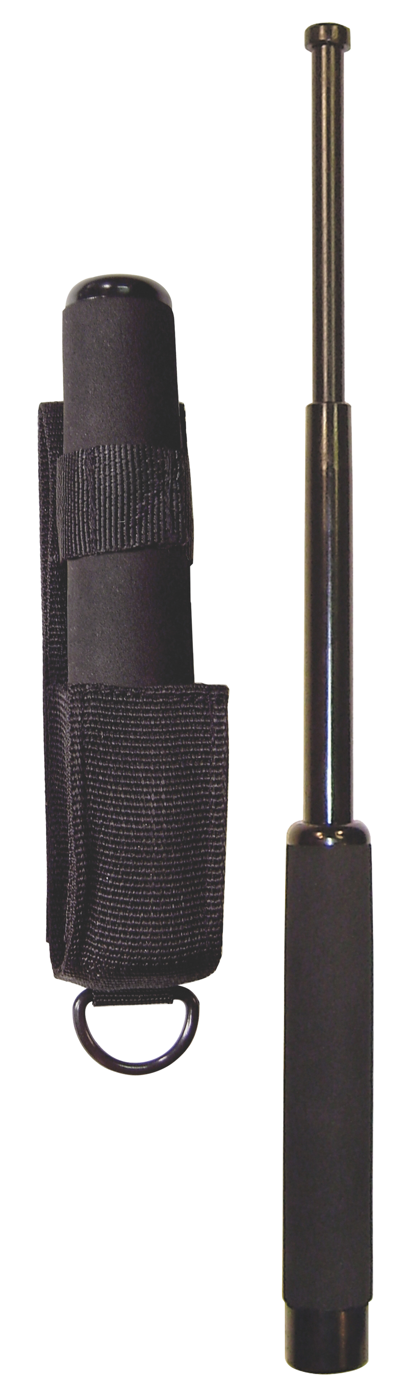 This 16-inch expandable steel baton features a foam handle for comfortable grip and expands with a flick of the wrist. It includes a nylon holster with belt loop for convenient carry and storage. Designed as a personal protection tool for self-defense applications.