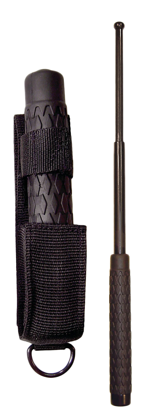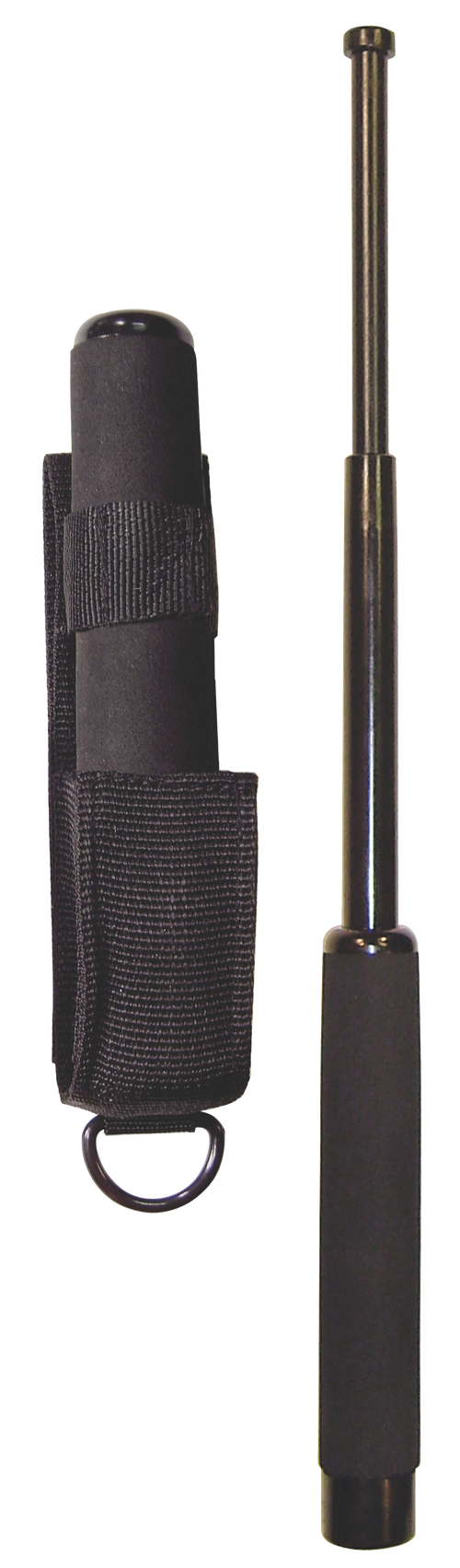 This 26-inch expandable baton features a steel construction with a textured rubber handle for secure grip control and expands with a quick flick of the wrist. It comes with a nylon holster with belt loop for convenient carry in a boot or vehicle. The baton weighs 1.60 lbs and is designed for personal protection and self-defense purposes.