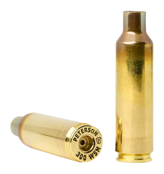 Peterson 300 WSM unprimed brass cases designed for reloaders. This product contains 50 pieces per box with 10 boxes per case. Suitable for handloading ammunition in the 300 Winchester Short Magnum cartridge.