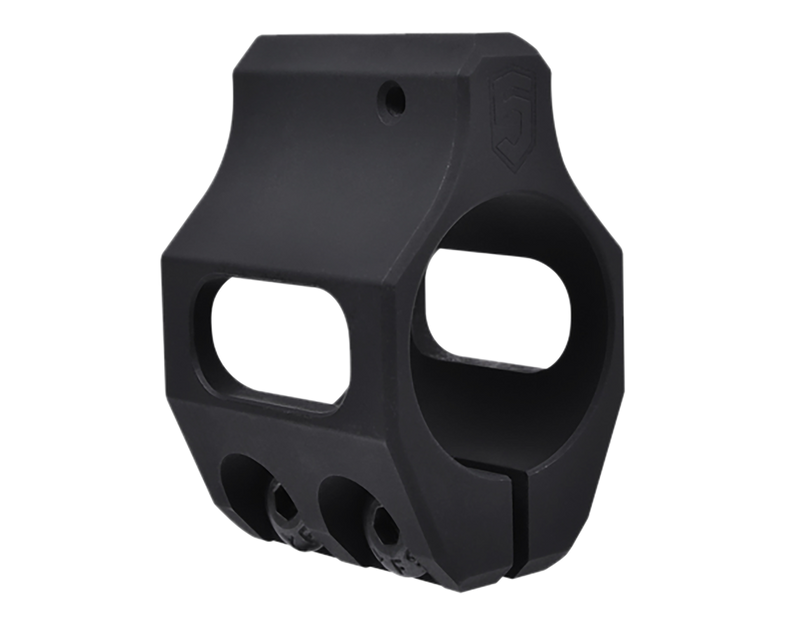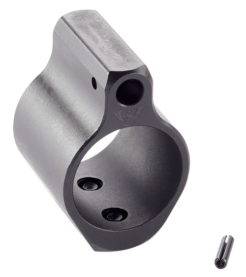 Low-profile gas block designed for AR-platform rifles with a .750" diameter barrel. Constructed from 4140 chromoly steel with a phosphate finish and features a clamp-on mounting system for secure installation.
