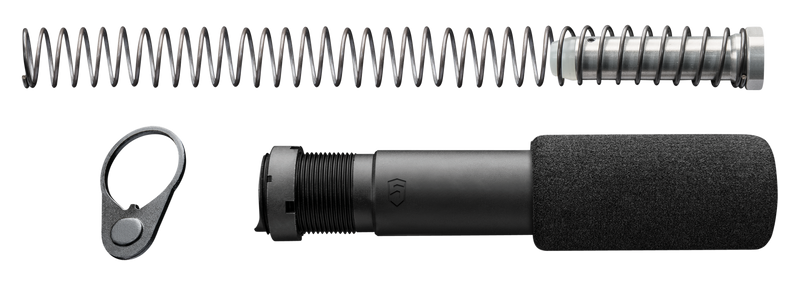 This is a complete buffer tube assembly designed for AR-15 pistol platforms. Made from black anodized aluminum, it measures 12.8" in length and is compatible with AR-15 pistol builds. Installation is straightforward on standard AR-15 lower receivers.