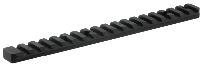 One-piece Picatinny rail base designed for Tikka T3 and T3x short action rifles with 20 MOA elevation built-in. Made from black anodized aluminum with a matte finish, this base mounts directly to the receiver and provides a secure foundation for Picatinny-compatible rings and optics. Includes front and rear mount heights of 0.350" and 0.380" respectively.