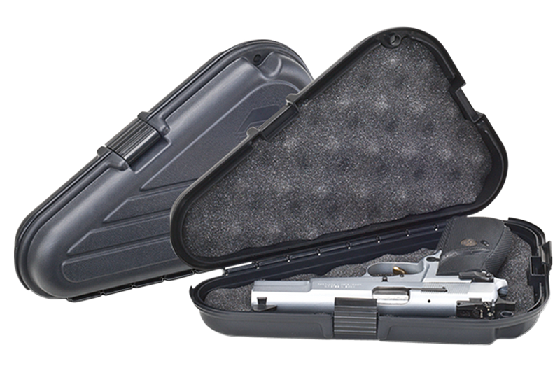 This Plano Protector pistol case is designed to securely hold a single handgun with thick-wall polymer construction and dual layers of high-density foam padding. Features a piano-style hinge, user-friendly latches, and the patented PillarLock System for reliable protection. Dimensions are 12" L x 2.25" W x 7" H.