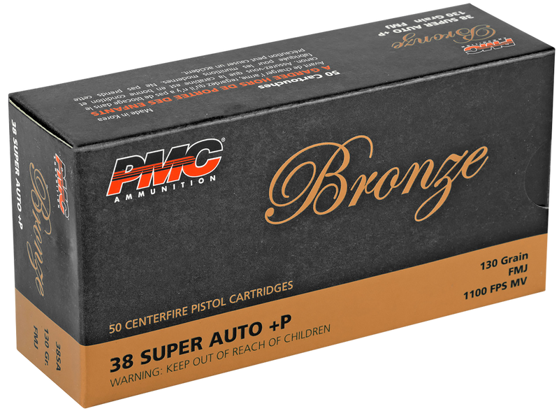 PMC Bronze 38 Super +P 130gr Full Metal Jacket Handgun Ammunition, 50rd Box - 38SA