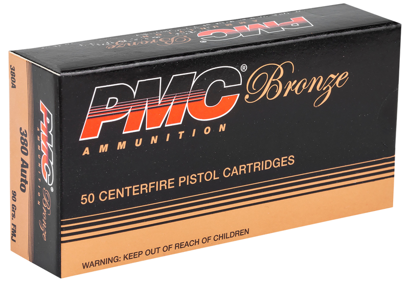 PMC Bronze 380 ACP 90gr Full Metal Jacket Handgun Ammo, 50 Rounds - 380A