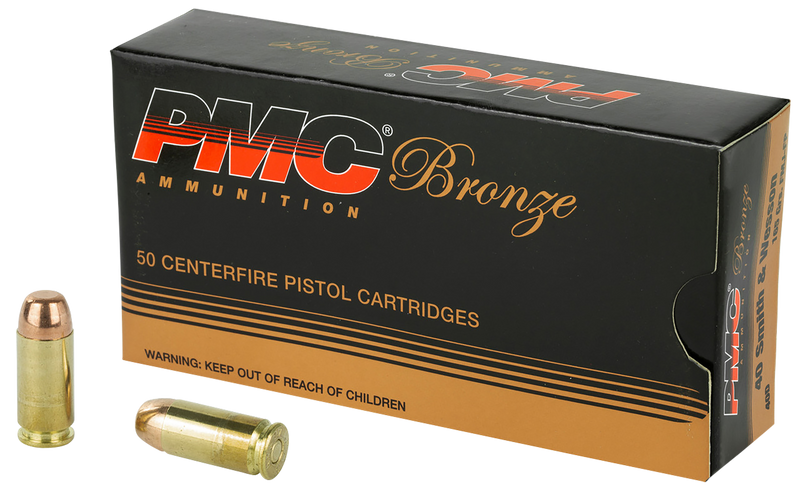 PMC Bronze 40 S&W 165gr Full Metal Jacket Handgun Ammunition, 50 Round Box - 40D