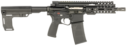 The POF P415 Piston Edge is a 5.56 NATO semi-automatic rifle featuring a 16.5" barrel and piston-driven operating system. It includes M-LOK accessory slots for modularity and a tungsten finish for enhanced durability.